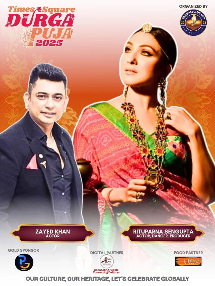 আগামী ৪ অক্টোবর, বাঙালি ক্লাব ইউএসএ-এর উদ্যোগে আয়োজিত টাইমস স্কোয়ারের দুর্গাপূজা অনুষ্ঠানে অংশ নেবেন ঋতুপর্ণা ও জায়েদ খান। এবারের আয়োজনে ভারত ও বাংলাদেশের বাঙালিদের যৌথ উদযাপনের ধারা অব্যাহত থাকবে।