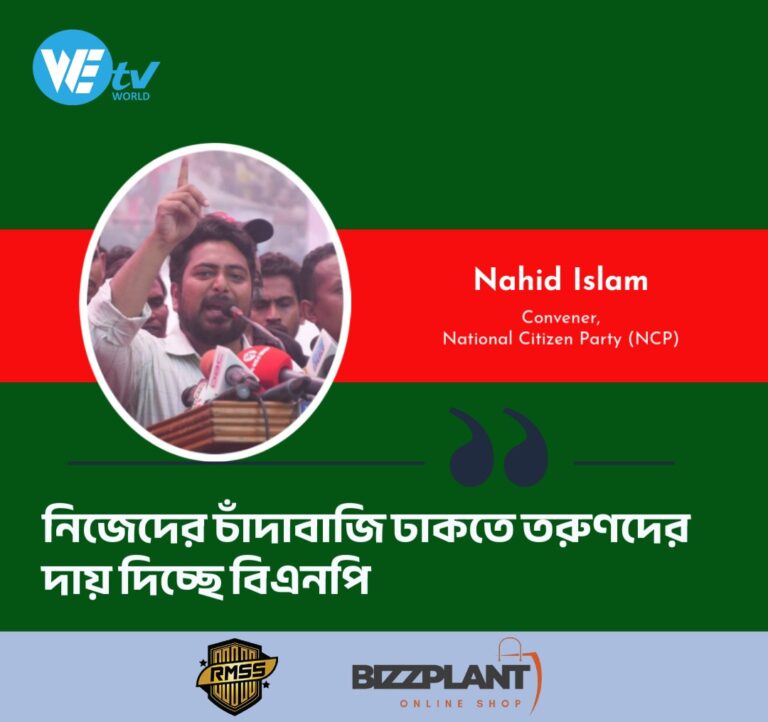 বিএনপির বিরুদ্ধে চাঁদাবাজি প্রসঙ্গে কঠোর সমালোচনা করে জাতীয় নাগরিক পার্টির (এনসিপি) আহ্বায়ক নাহিদ ইসলাম বলেছেন, ৫ আগস্টের পর বিএনপির মাধ্যমে চাঁদাবাজি ছড়িয়ে গেছে। এখন নিজেদের দায় এড়াতে তরুণদের উপর দোষ চাপানো হচ্ছে।