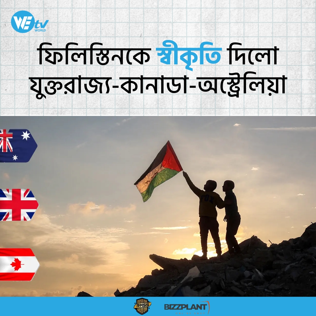 ফিলিস্তিনকে রাষ্ট্র হিসেবে আনুষ্ঠানিকভাবে স্বীকৃতি দিয়েছে যুক্তরাজ্য, কানাডা ও অস্ট্রেলিয়া।